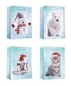 GIFT BAGS CHRISTMAS LARGE GLITTER WHITE DESIGN